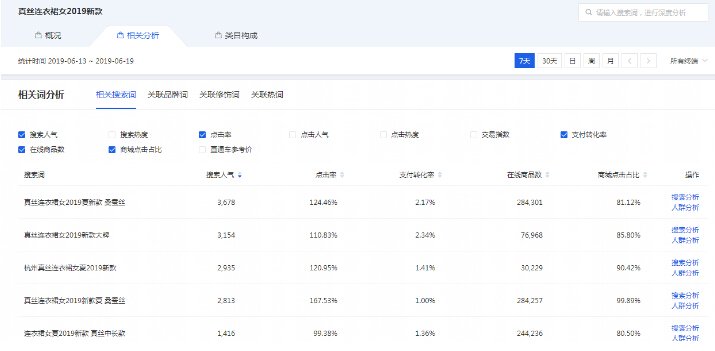 比如我们可以在生意参谋里看到这个词:真丝连衣裙女2019新款,那么如果你的产品不是真丝的,你用了这个词,会导致什么结果呢?
